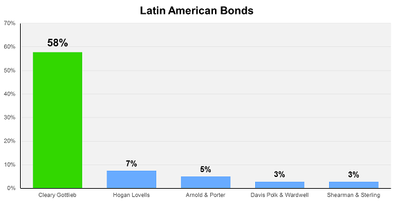 For the first nine months of 2016, Cleary Gottlieb led all international law firms in Latin American bond issuances, achieving a total market share of 58 percent during the period, according to Bloomberg.